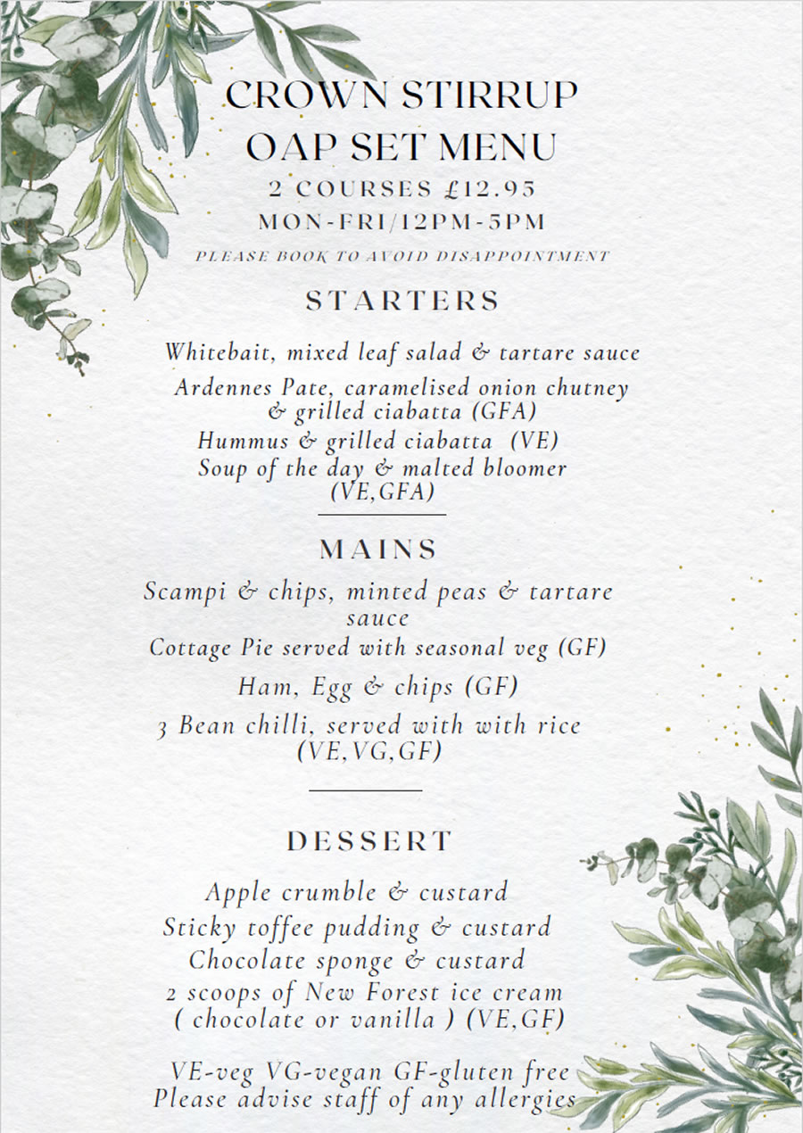 Our Menu at The Crown Stirrup
